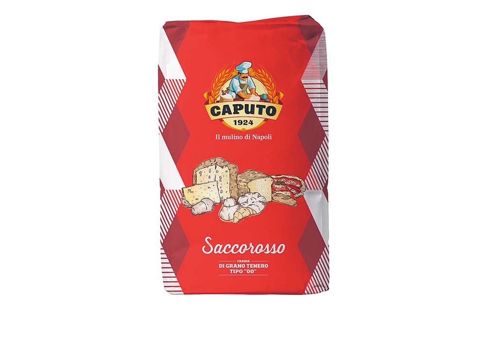 今回使用したカプート社の小麦粉「サッコロッソ・リンフォルツァート」。生地の強さや伸び、弾力などのバランスが良く、イタリアの職人からも厚い信頼を得ている。長時間発酵にも適した粉。