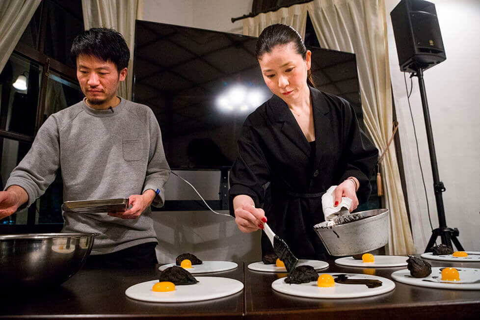 起用されたのは、2年前のDINING OUT ARITA&で腕をふるった渥美創太シェフ、そして、書家の中塚翠涛さん。
