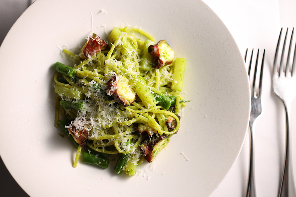 ディ・チェコNo.8 リングイーネ ピッコレ 使用 タコのジェノヴェーゼ(コースの一部として提供)
