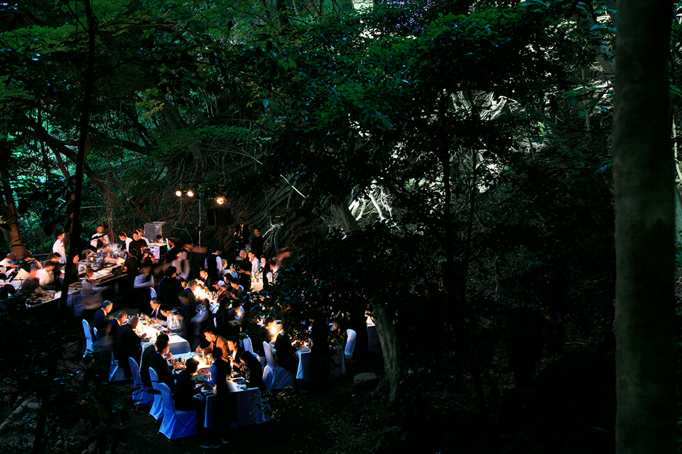 寺の境内や城跡、武家屋敷の一室、はたまた道路といった、レストランを設営するには極限的とも言える場所にキッチンとダイニングをつくり上げるDINING OUTでは、そこに存在する環境を活かすことが大前提となります。