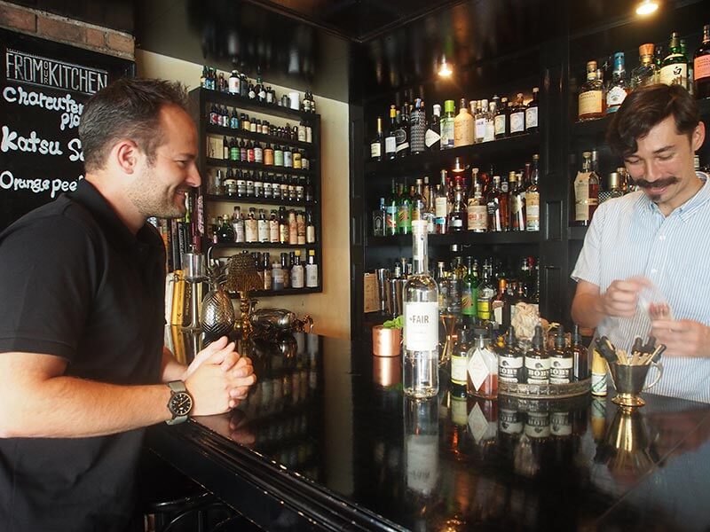 来日したアレクサンドル・コアランスキー氏。「FAIR.」を取り扱う恵比寿のバー「Bar.TRENCH」にて。