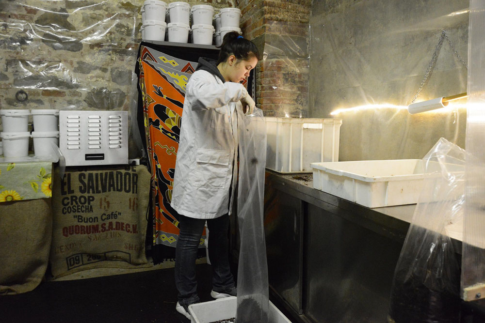 2013年に立ち上げ、2016年からは現在の農業学校を拠点に活動する「フンギ・エスプレッソ」の当面の目標は、まずは“身近な農業”の認知を広めることであり、そのためにコーヒー豆を利用したきのこ栽培についてのワークショップを開催し、きのこ栽培キットをオンラインショップで販売している。栽培キットは、すでに菌糸体植え付け済みで後は水を与えるだけで栽培できるタイプと、自分で集めたコーヒー豆のかすにシルバースキンと菌糸体を混ぜ合わせて育てるタイプの二つ。子供にも簡単にできること、園芸の初心者でも手軽に安全なきのこが育てられることから、プレゼントにもよく利用されているという。