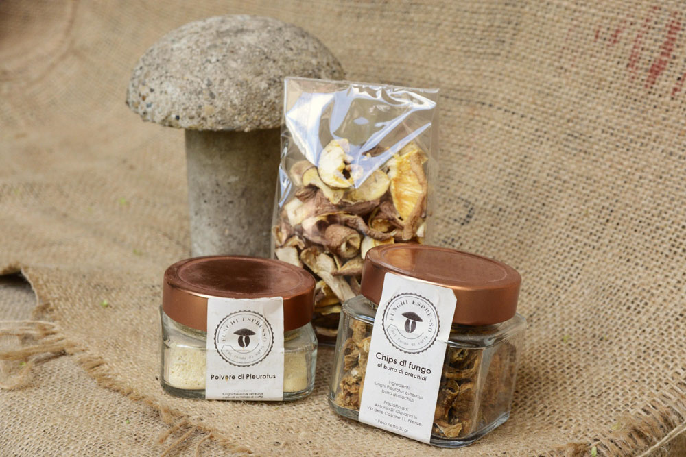2015年にミラノで開催された万博(テーマは「地球に食料を、生命にエネルギーを」)に「フンギ・エスプレッソ」として出展した折り、日本人が乾燥きのこをそのまま口に入れ味わっているのを見て、スナック食品になる可能性を見いだしたのだという。きのこパウダーは、リゾットやパスタに加えるだけで手軽にきのこの風味が味わえるというのがセールストークだ。これらの保存食品は賞味期間が1年と生のきのこより販売期間が断然長いのはもちろんのこと、コーヒー豆由来のポリフェノールを効率よく摂取できるといった付加価値もあり、売り上げ増に貢献している。
