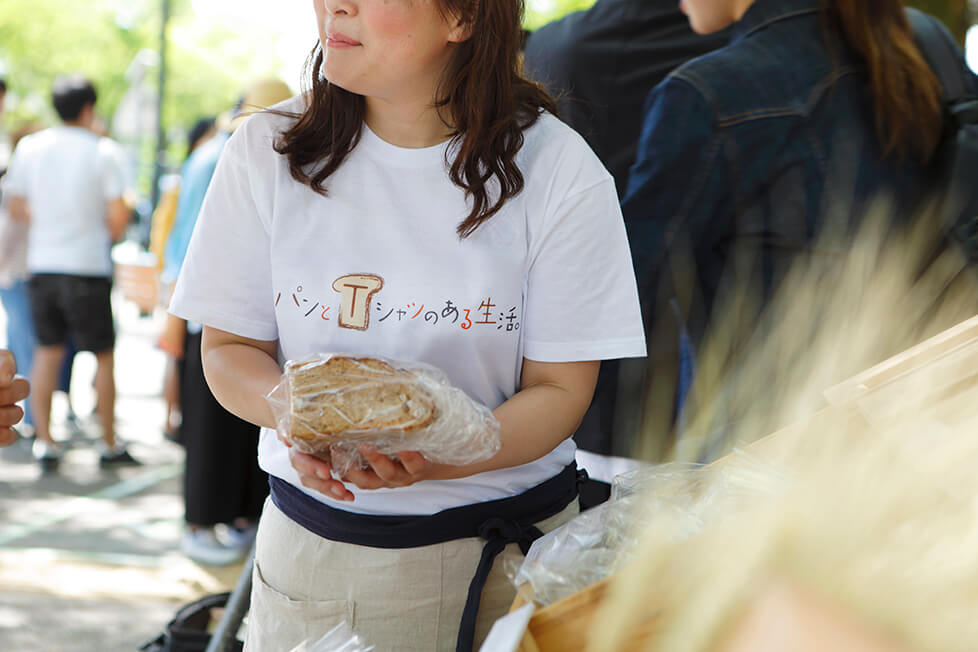 岩永さん、田村さんからも、「パンとTシャツ 毎日接する大切なもの」について素敵なメッセージをいただきました。マルシェで販売したパンとともにお届けしましょう。