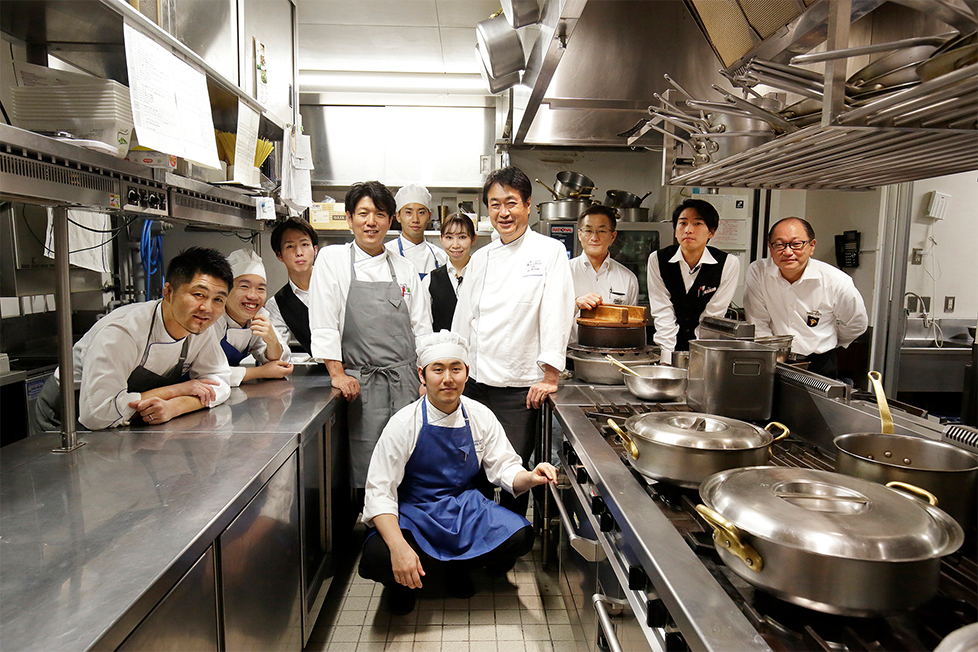 1957年生まれ。1990年の「アクアパッツァ」オープンと同時に料理長に。30周年の特別企画としてアクアパッツァ出身のシェフ4名と共作したおせち料理を「大丸・松阪屋」で販売した。