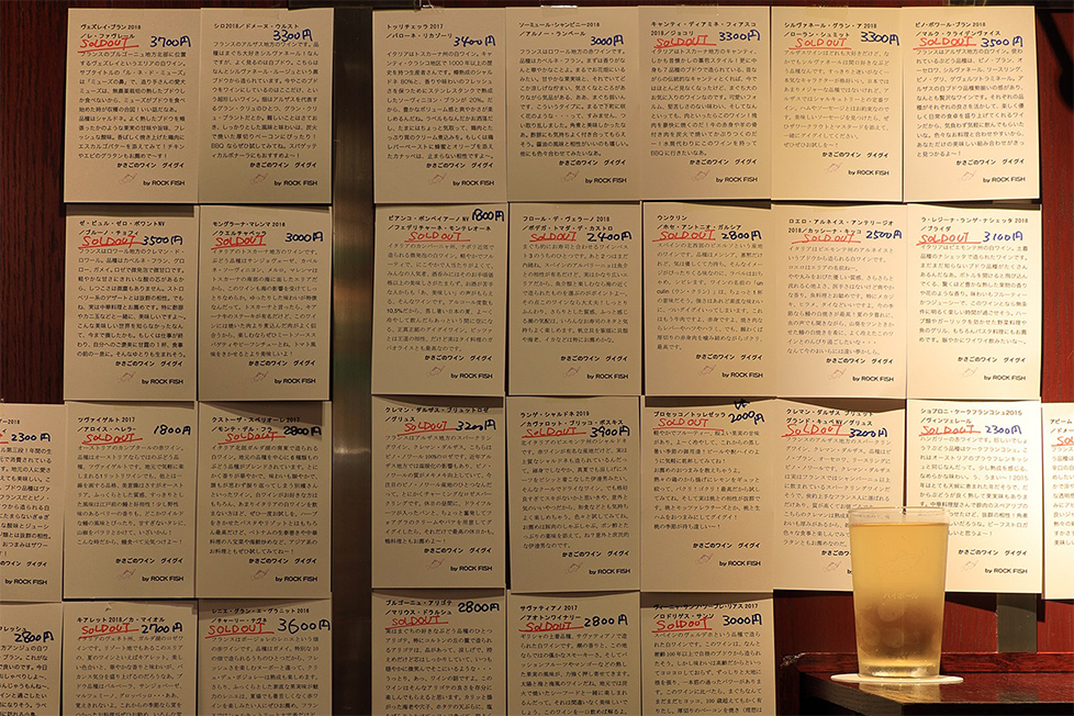 ハイボールを日本に浸透させたといっても過言ではないバーだけれども、ロックフィッシュでは今、お酒の小売免許を活用して、ワインを売っている。間口さん自身がワインもよく飲むし、フランスが大好きでしょっちゅう旅に出ては一度に100本くらいも買い込んでいた。店で「土曜の夕方にワインをぐいぐい飲む」イベントの構想も練って、「(株)かさごやワイン」という法人も持っていたのだ。