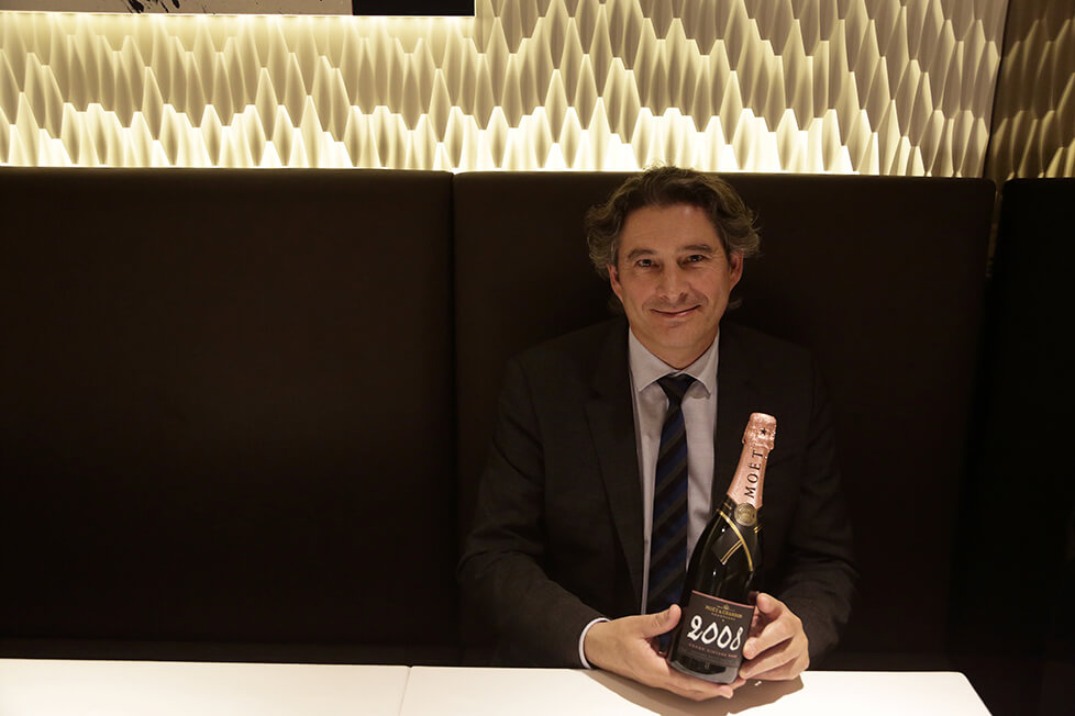 「この厳しい酸味を抑え、モエ・エ・シャンドンらしい柔かみをどう表現するかが、私たちにとって大きな課題となりました」とブノワ。そこで特に酸の強いシャルドネの比率を控えめにアサンブラージュ。攻撃的な酸味を封じ込めたが、ブランのほうはまだ少々熟成の時間を要するようだ。「20%含まれる赤ワインがシャンパンに丸みを与えてくれるので、ロゼはひと足早く飲み頃を迎えたのです」と語る。