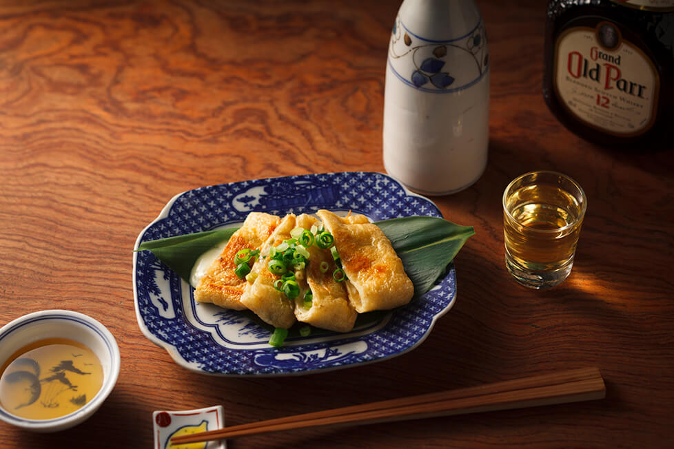 ――おつまみには、油揚げにブルーチーズを詰めて焼いた一皿を。そのココロは?
