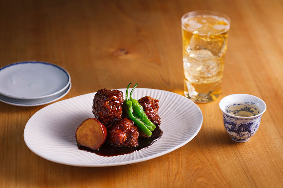 近藤 温かい中国茶です。僕自身がお茶が大好きで、ハイボールを飲むときは、こうしてチェイサー代わりに飲むことが多いので。香港の飲茶レストランでは、皆お茶を何杯もお代わりしながら、延々と点心をつまんでいますよね。あのダラダラ飲んで、食事できる感じが、いいなと思って。