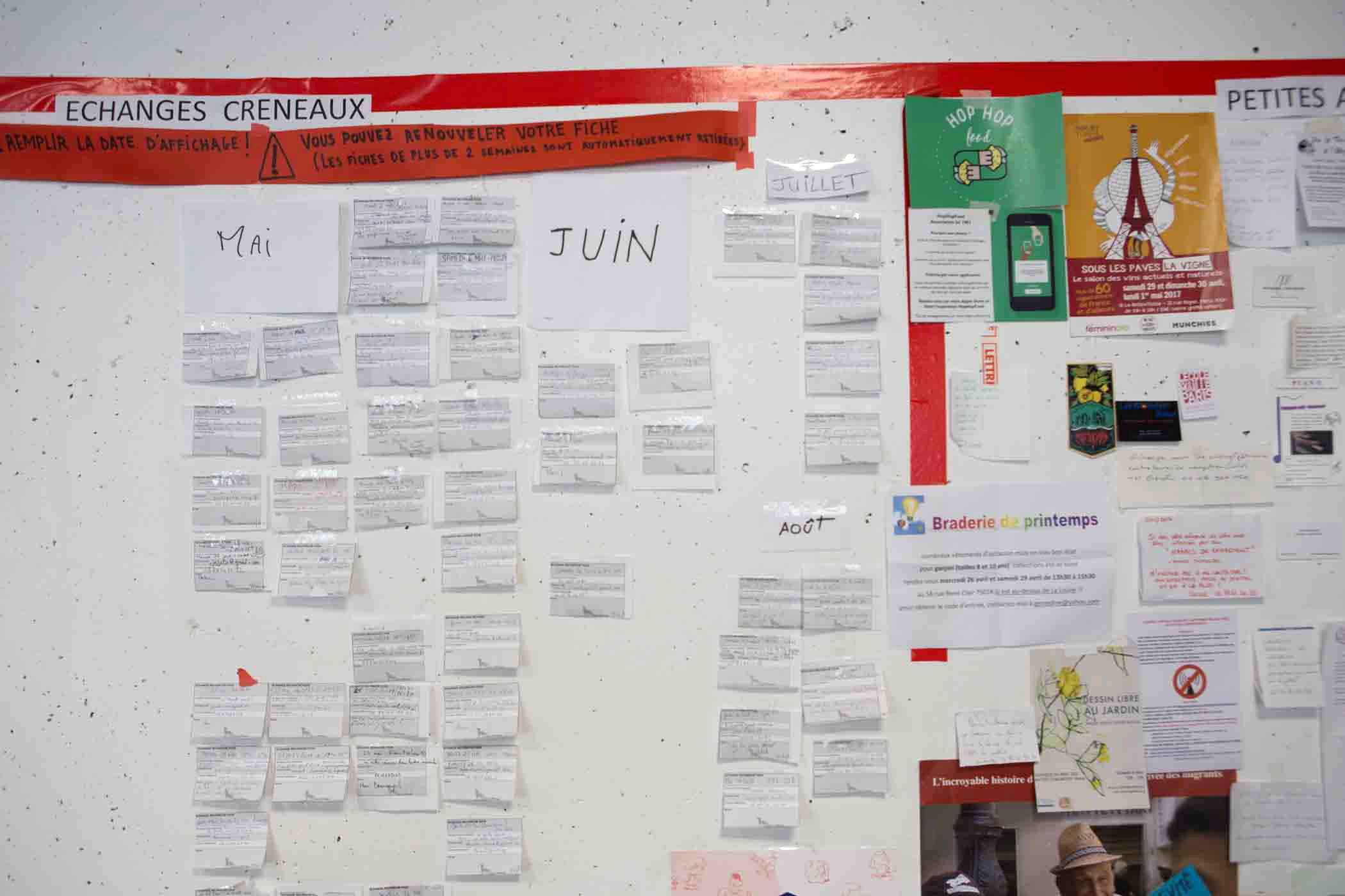 仕事分担ができた後、時間変更や仕事の取り換えを望む人たちのメッセージボード。本人同士の了解があれば、お仕事交換も可能。