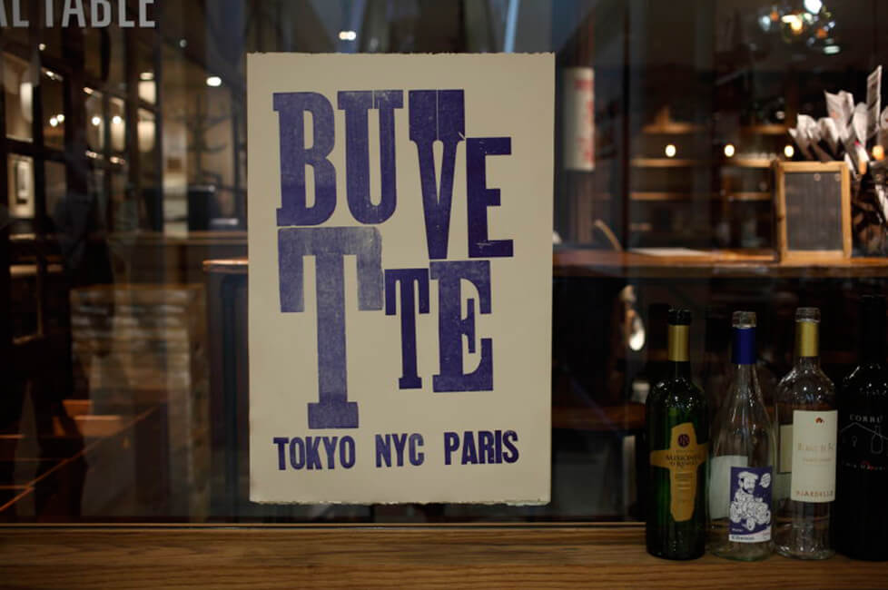 「Buvette」のロゴとマーク。どこか懐かしい空気を湛えています。