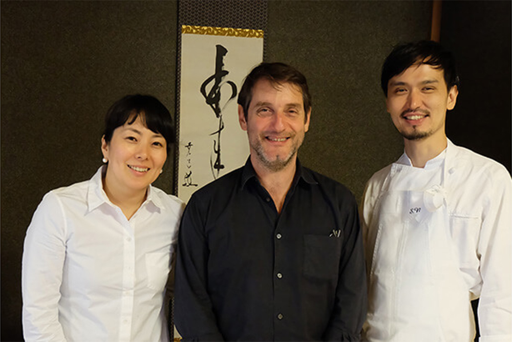 「レフェルヴェソンス」のほか、話題のCOREDO室町にオープンした「ラ・ボンヌ・ターブル」でも生産者とのつながりを大切にした食を提供する、生江シェフ。