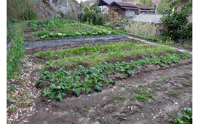 東慶寺本院の裏手にある畑の一部。所違えど、カリフォルニア郊外のバークレーにある「シェ・パニース」を想起させる。