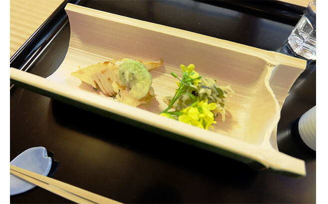 鎌倉の自然の恵みをそのまま体に取り入れるような一品や、3人それぞれの得意分野を活かした料理もあったが、料理人としてのアイディアと技術が掛け合わされ、その知見と魅力が存分に発揮されていた2つの皿が特に印象的であった。