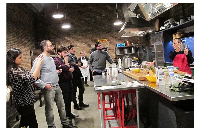 こうしてうま味や和のだしへの関心が高まるニューヨークで、今年1月、昆布を細い短冊状に切ったヒット商品「昆布革命」で知られる、天満大阪昆布の喜多條清光氏が、食の文化の発信地として今話題の地区ブルックリンを訪れ「うま味の探究:昆布のだし」というテーマでクラスを開いた。会場は美食家が足繁く通う、調理器具・食材店「ブルックリン・キッチン」。同店オーナーのハリー・ローゼンブラム氏は、日本の食関連の優れた小規模生産者とアメリカの小売店をつなぐコンサルティングも手掛けており、日本の生産者を海外市場につなぐ活動を展開する、オフィスムスビの代表、鈴木裕子氏がサポート役に入り、今回のクラスが実現した。