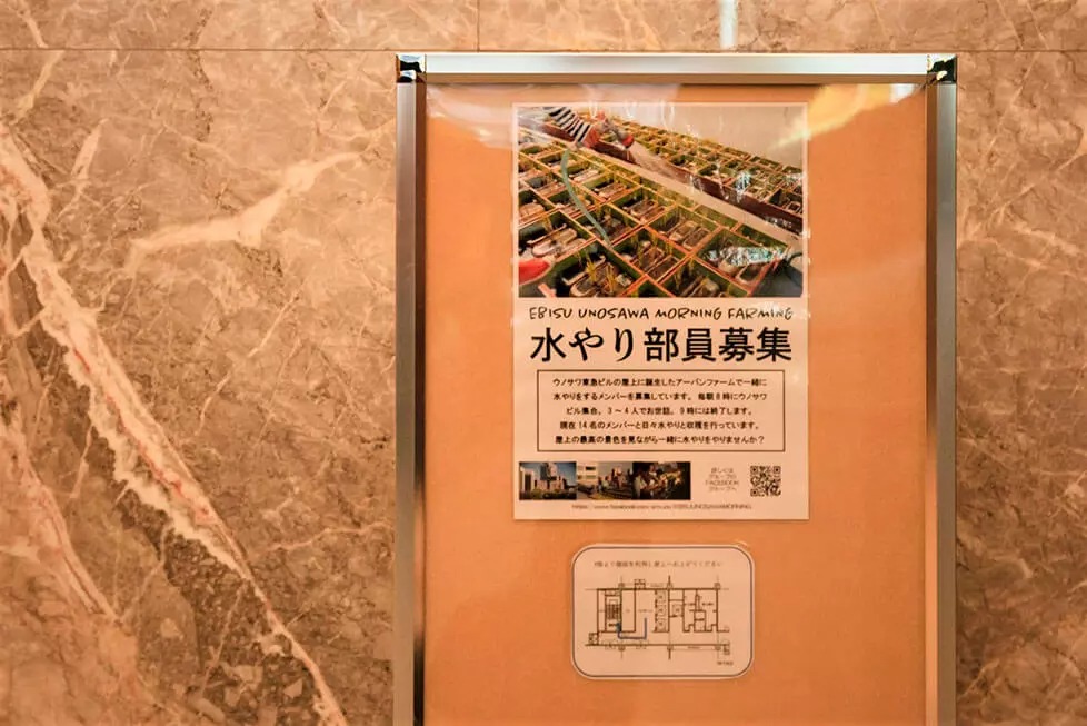 ここは恵比寿のオフィスビル。「水やりって、部員って、何?!」。好奇心に任せて屋上の扉を開けた人は驚くだろう。畑があるのだ。室外機の向こうに並んだ巨大プランターには、みずみずしい野菜たちが日の光を浴びて輝いている。それらを愛おしそうに世話しているのが張り紙の仕掛け人、「アーバン ファーマーズ クラブ(UFC)」の代表理事であり、「渋谷の農家」でもある小倉崇さんだ。