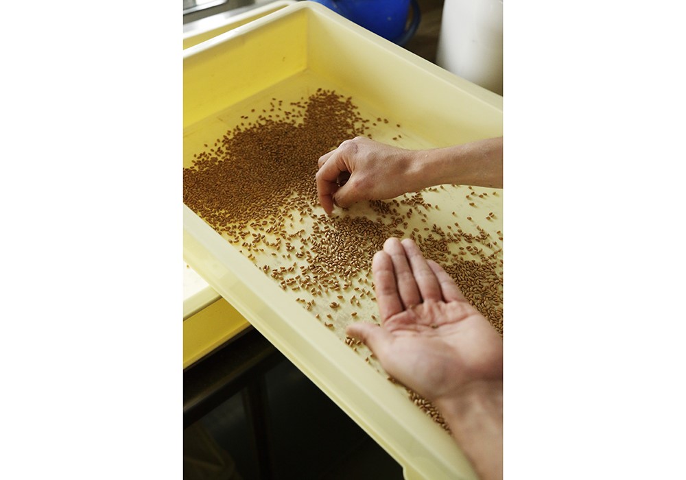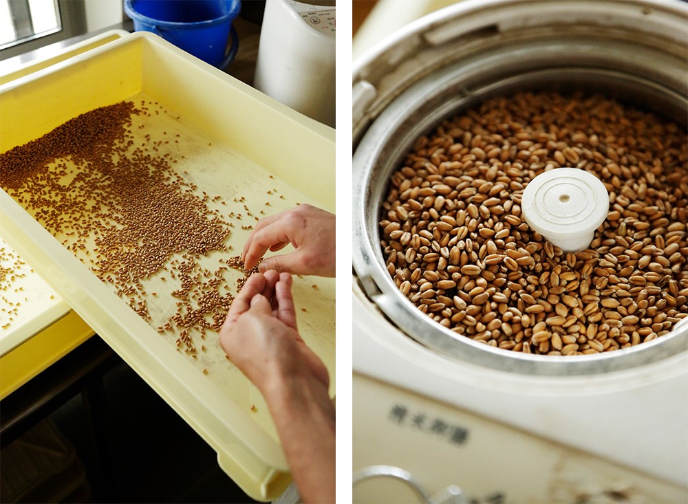 どんな食材も、できる限りロスを出さずに食べ切るのがモットー。麦のピーリングも3分づきに抑える。その分、目視で時間をかけて、欠陥のある麦の選別を行う。