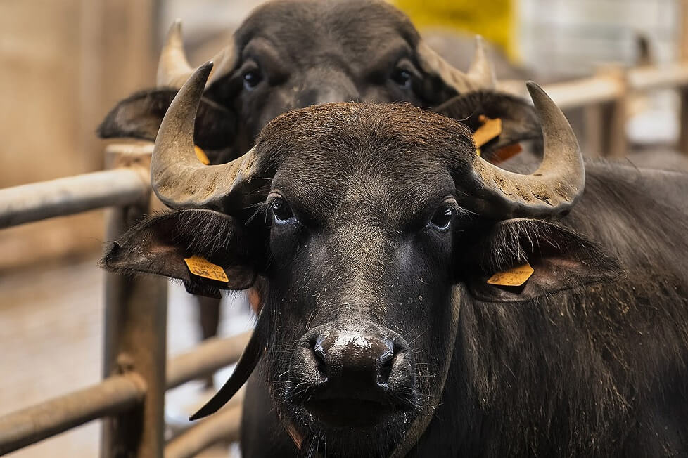 水牛は一頭一頭、乳房をスクリーニングされ、搾乳スペースに入ると首輪に組み込まれたデータを搾乳装置が読み込んで個体を判別し、ミルクカップがそれぞれの乳首の位置に適応して無人で自動装着される。これは家畜の健康を守り、ストレスを与えないことで良質の乳を得ようという考えに基づいたものだ。