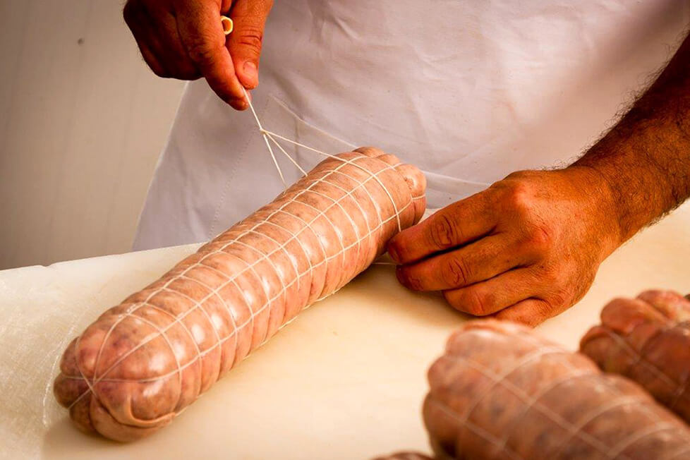 ノービレ・クチートのおいしさの秘訣は、腸を二重にして縫い合わせることで、肉の湿度をより長く保ち続ける点だ。