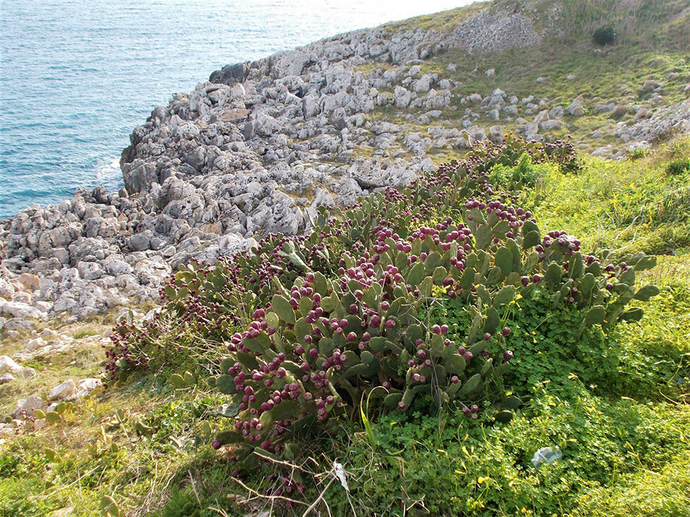 車中泊で寝つけないまま翌朝を迎えると、列車の窓から海岸線を覆うサボテン、それもシチリアなどで見慣れた食用のフィーコ・ディンディア種(fico d'India)とは違った種類のサボテンが目に入った。地元の人にそれがどの品種なのか、そして特にその用途を尋ねると、イタリアではメキシコやインドなど海外の実情とは大きく違い、オプンツィア(ラテン語でopuntiaと書いてオプンツィアと呼ぶ)は如何なる利用もされていないと知った。それどころか繁殖力が強い邪魔な存在で、毒性のある品種もあるといわれた。
