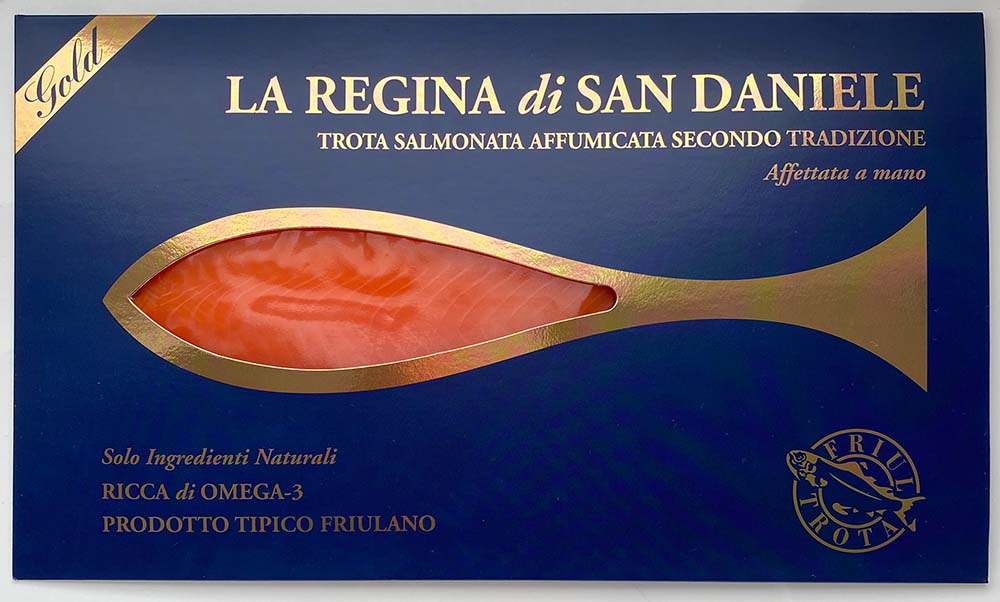 la Regina di San Daniele, la trota affumicata a freddo pensata per far compagnia al Re di San Daniele, quel prosciutto crudo già famoso in tutto il mondo.
