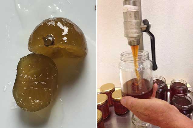 La nostra marmellata di frutto fresco, senza aggiunta di pectina, è prodotta in due versioni, sia con il frutto verde che con quello maturo. Quest’ultima è meno profumata ed ha un’amarezza più delicata tanto che sembrano prodotte da due frutti diversi ed hanno differenti estimatori ma bisogna dire che, anche se il frutto verde è più pregiato, quello maturo raddoppia ancora la quantità di vitamina C.