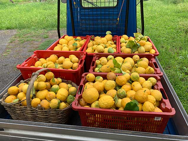 La nostra produzione è di soli 30 quintali all’anno; il frutto va raccolto a settembre, quando il profumo della buccia è più intenso e il colore è verde brillante, poi diventerà giallo e, a dicembre, color mandarino, perdendo aroma ed acquisendo un’amarezza più delicata.