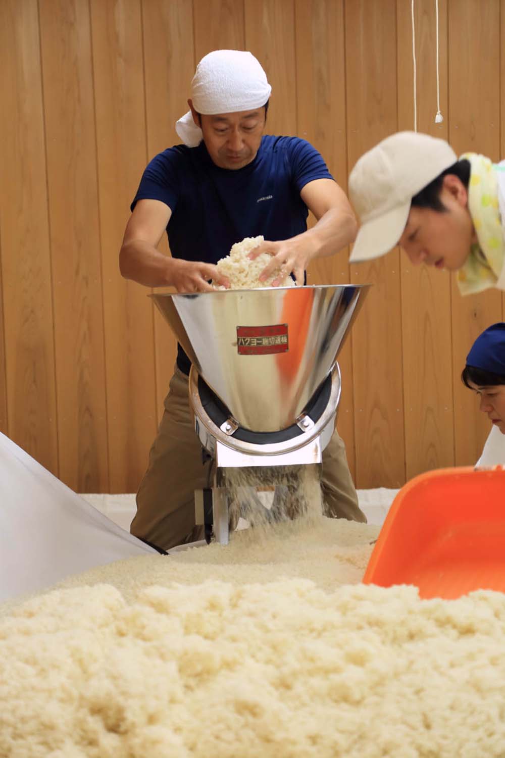 一方、蔵の革新を担い、繊細な味わいを目指す「おだやか」には、焼酎の醸造に使われる白麹菌で麹米を作った「白麹酒母」が使われる。乳酸菌の代わりに、白麹が発するクエン酸で制菌するのだ。