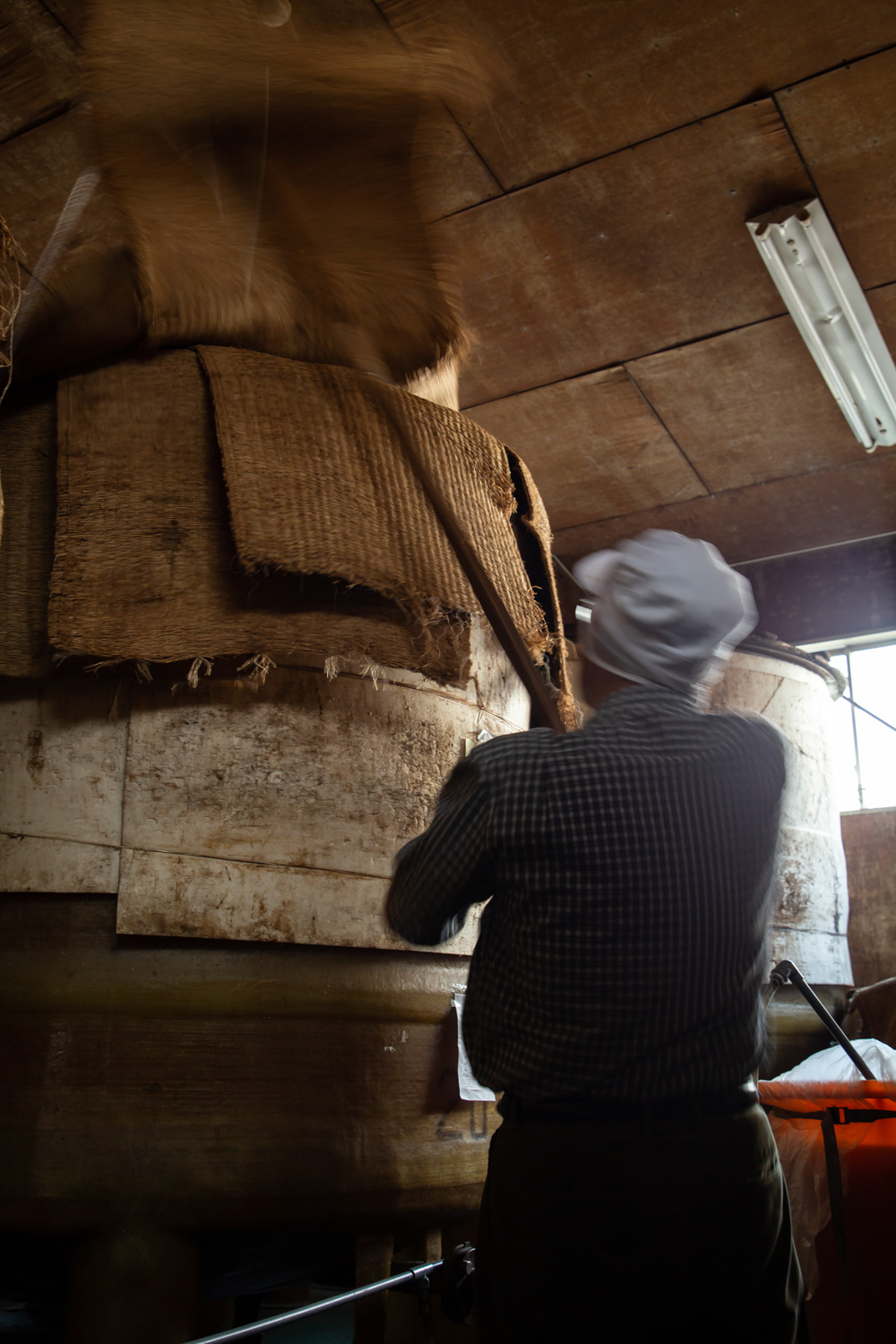 菰(こも)、蓋の開閉具合で通気性、温度、湿度を調節し、発酵を促す。