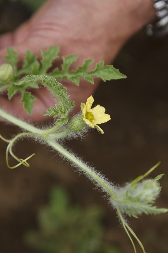 大きさではなく、つるに付けた赤い印を頼りに収穫