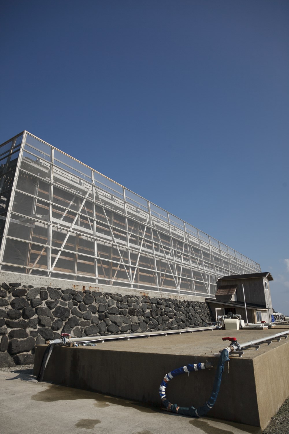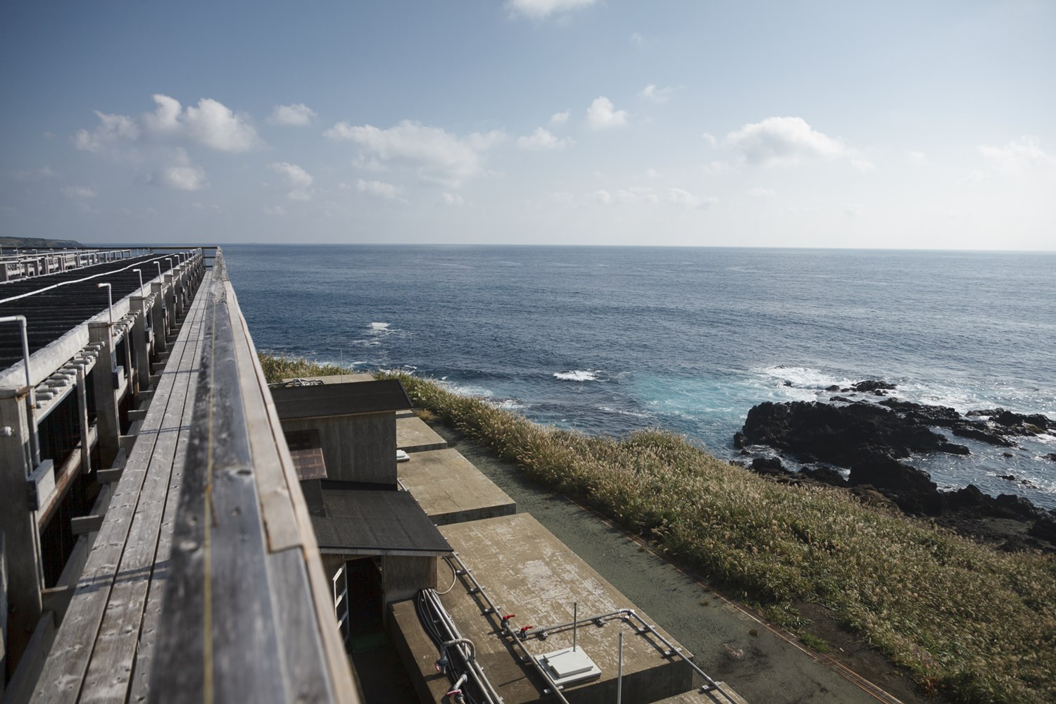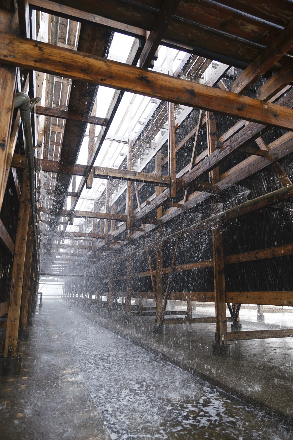 あの柱ばかりの建物が「流化式塩田」です。ドイツで発明され日本では明治期に設置が試みられましたが、実用化され本格的に稼働したのは第二次世界大戦後のこと。