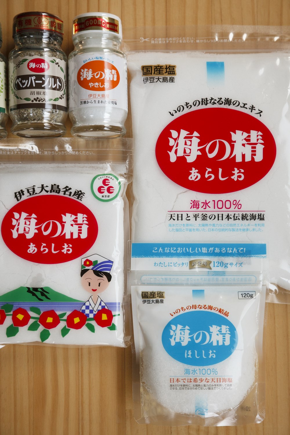 海の精の歴史は、塩運動の歴史そのものです。運動の当初は、伝統海塩の復活を求めて署名を集め、国に請願しましたが認められなかったことから、やむなく高純度の輸入塩(塩化ナトリウム)に、やはり輸入された高純度のニガリ(塩化マグネシウム)を加えて炊き直した塩を作り広めました。しかし、日本の海水のみを原料した伝統海塩の復活を諦めきれず、伊豆大島に製塩試験所を開設し「試験研究」の許可を得て試験製造を始めました。やがて、会員制度という特殊な条件のもとで、自主流通の道が開かれました。「海の精」の誕生です。