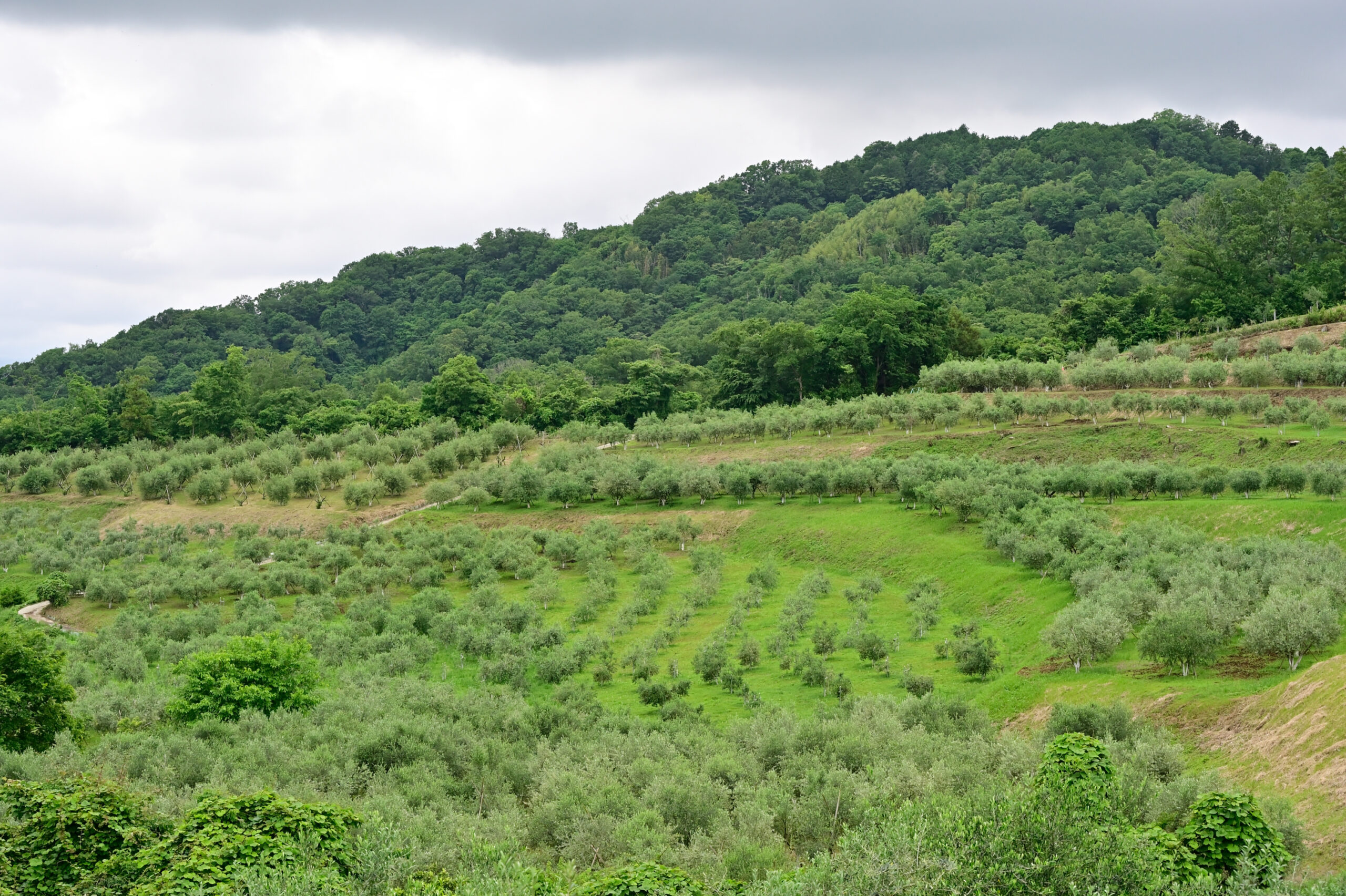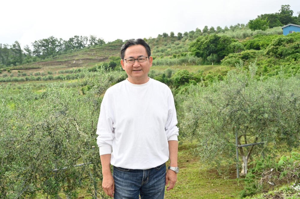 オリーブの産地といえばスペインやイタリアが有名ですよね。「オレンジの栽培に向く土地はオリーブにも向いている」と言われます。神奈川県南西に位置する中井町は、もともとみかん栽培が盛んで、ここも一昔前までは一面のみかん畑でした。でも収穫や手入れが大変なので、高齢化してみんな手放してしまったんです。30年程前、耕作放棄地になっていたところを、造園業を営んできた父が買い取らせてもらいました。