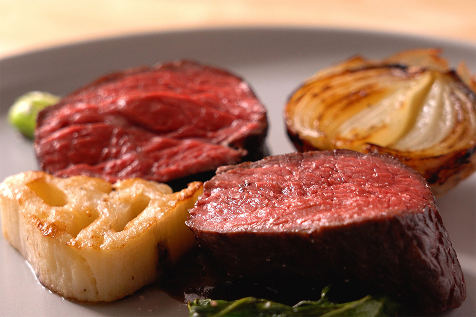 雄大な自然を背景に飼育を手掛けてきた生産者の考え方や取り組み、その類稀れな赤身肉の特性を引き出すシェフの技をご紹介します。