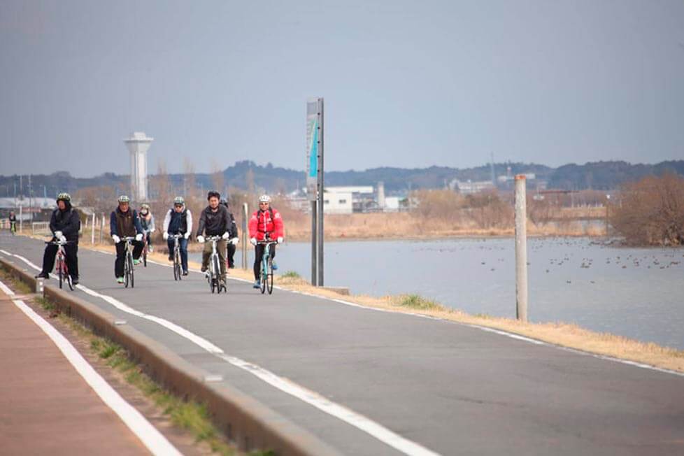 Taking advantage of its vast flatland, the Southeastern part of the Ibaraki prefecture is suitable for bicycle touring. In fact, other than Kasumigaura Ride Quest programs, a long bicycle road circling Lake Kasumigaura (approx. 94km) and a trans-city bicycle road called “Tsukuba-Kasumigaura Rin Rin Road” (cf: Rin Rin is the an onomatopoeic word for a bell.) from Kasumigaura-shi to the Tsukuba area via Tsuchiura-shi, which has a total length of 180km, is being developed.