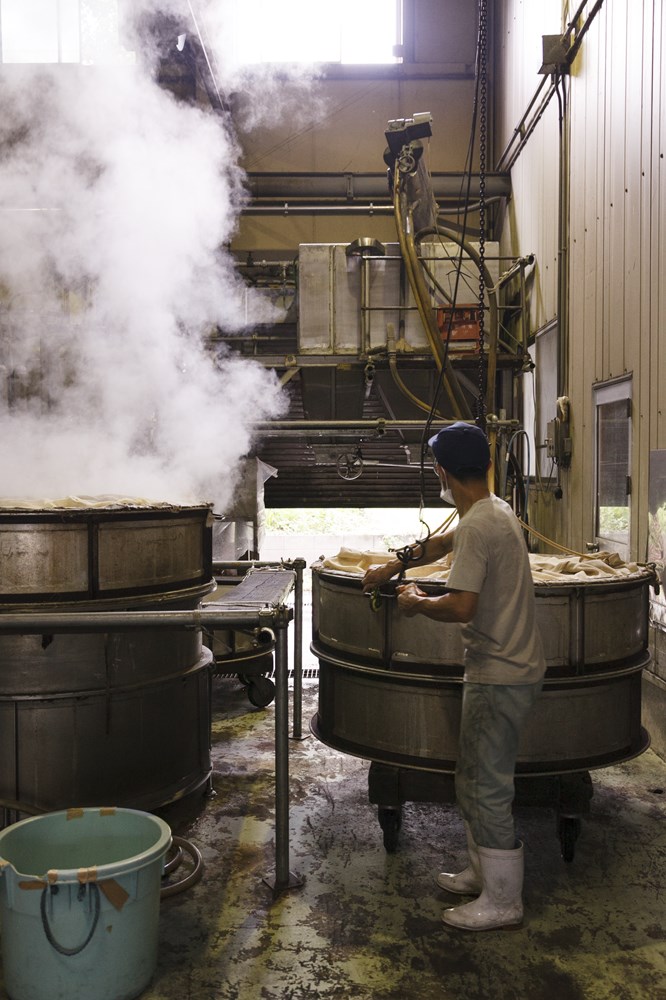 but more accurately it’s the result of a mashing or saccharification process.We add glutinous rice and a kome-koji starter to rice shochu liquor. Then we let the enzymes go to work—it takes a year,” says Toshio Sumiya, president of Sumiya Bunjiro Brewery. More than 60 percent of the company’s mirin sales are to professional kitchens.