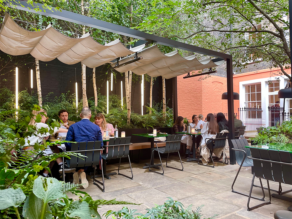 2021年7月19日、ロックダウンが全面的に解除され、マスク着用の義務やソーシャルディスタンスの規制が撤廃されたロンドン。とはいえ、密を避けるために、テラス席やガーデンスペースを擁する飲食店に依然人気が集まっている。中でも5月中旬、ロンドンの老舗ファッション・ブティック「ブラウンズ」内にオープンし、瀟洒な中庭のテーブルを持つ「ネイティブ・アット・ブラウンズ」が話題だ。