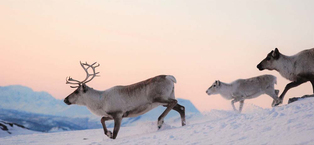 (写真2枚目)ノルウェー北部、トロムソのトナカイ。放牧数は政府によって管理されている。「持続可能なトナカイ業をサーミ人が続けるためには良い規制」とガウプさん。