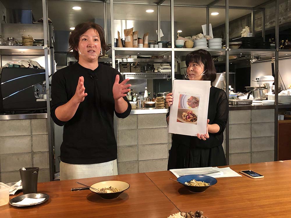 3つの食材を主役にした「茨城県産『常陸の輝き』ときのこの秋のパスタ」の作り方を教わりました。