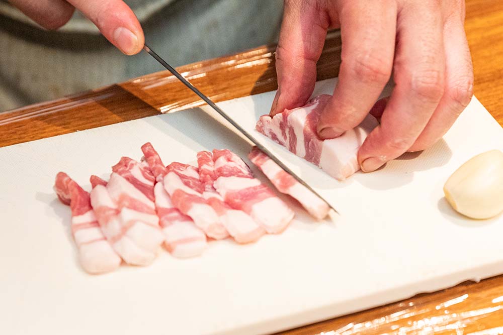 豚肉は1.5㎝幅に切ると硬くなりにくく、食べ応えもあってよいそう。