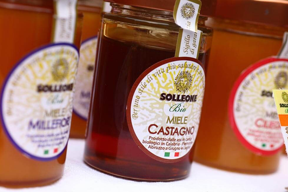 たとえばヒマワリのはちみつは、マルケ州、モリーゼ州に7、8月の間だけ蜂を連れて行き、採蜜をします。もちろん周囲の環境はオーガニック。巣箱に蜜が溜まったら、表面の白い膜だけを剥がして遠心分離機にかけます。出てきた蜂蜜を網で漉し、寝かせたら出来上がり。もっとも自然でピュアなはちみつの完成です。