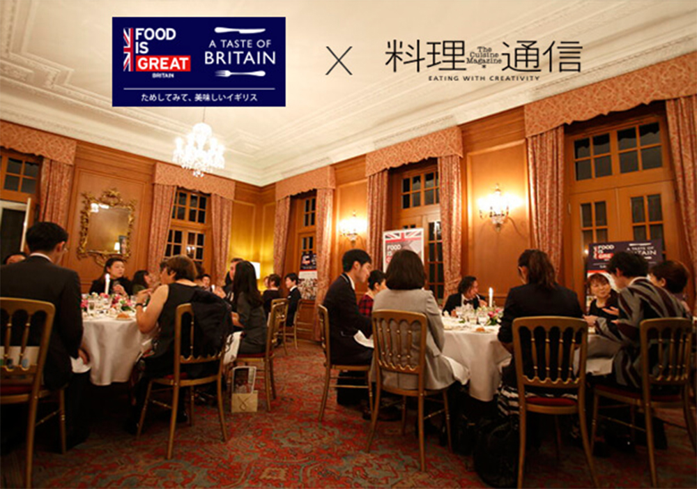 駐日英国大使館「Food is GREAT:A Taste of Britain ためしてみて、美味しいイギリス」キャンペーン1周年と雑誌『料理通信』創刊100号を記念したコラボレーション・ディナーが2014年11月13日、東京・半蔵門の駐日英国大使館で開かれました。