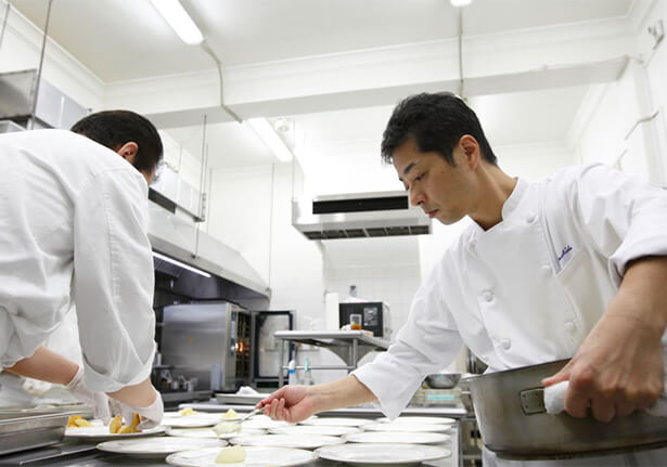 吉田料理長は2014年夏、ドバイにあるギャリー・ローズ氏のレストランで研修。その成果を伝統の味と見事に融合させた。