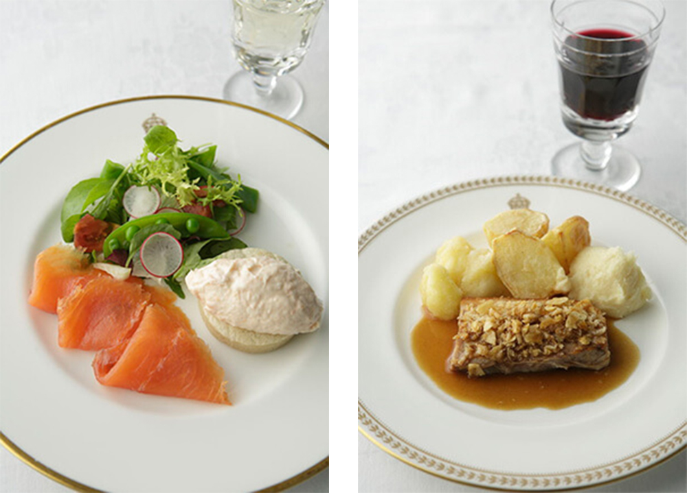 ディナーは、2014年の夏、イギリスのセレブシェフ、ギャリー・ローズ氏のもとで1カ月研修し、大きな収獲を得た大使公邸の吉田龍貴料理長の料理に、飴谷勇治ソムリエが厳選した英国ワインをペアリングするという趣向。前菜のスコットランド産スモークサーモンやメインのローストポークは、イギリスの古き良き伝統も大切にしながら、ローズ氏から受けたインスピレーションを随所に織り込んだ、ブリティッシュ・ガストロノミーの新風を感じさせる仕上がりに。特にサーモンムースをのせたクランペット(パンケーキの一種)やパースニップ(シロニンジン)のクリーム、鮮烈な酸味を持つブラムリー・アップルのソースなど、初めて味わうというゲストも多く、皿への好奇心は尽きない様子。最後はイギリスに700種以上あるチーズから厳選の3種をポートと共に味わい、イギリスの食の奥深さを心ゆくまで楽しむ一夜となりました。