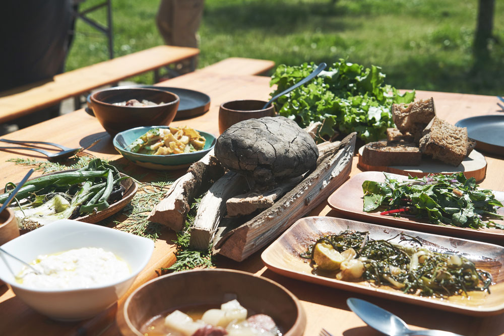 クルックフィールズのシェフ、山名新貴さんによるスペシャルランチ。クルックフィールズで育った新鮮な野菜を土の中で調理するプリミティブなスタイルで仕上げます。