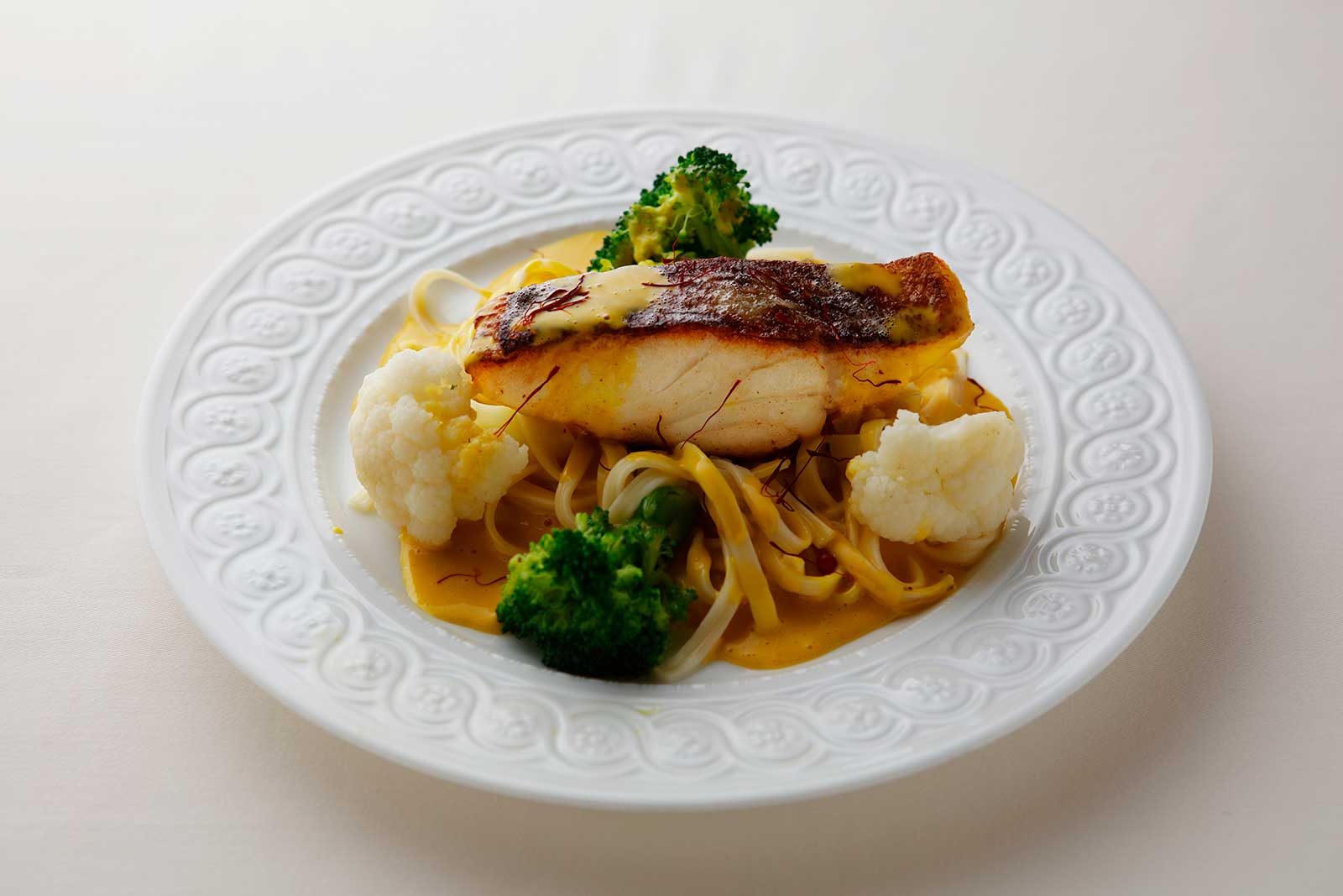 トップ写真は、三國清三シェフによる「ノルウェー産スクレイのロティ、ヌイユ添え、サフランソース」。日本上陸を記念して行われた発表会でふるまわれた。スクレイは「放浪者」という意味を持ち、毎年産卵のため約1,000㎞の道のりを回避する。