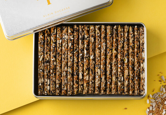 アラン・デュカスが描くおいしさを追求した“ビスキュイ・キュイジネ=料理仕立てのビスケット)のビスケット専門店”。妥協のない素材選びと職人の技術を生かして複雑に重なる食感と究極の味わいを表現する。隣接するビーン・トゥ・バーの工房で仕立てる自家製ショコラ、ガナッシュ、プラリネなども素材に活用。