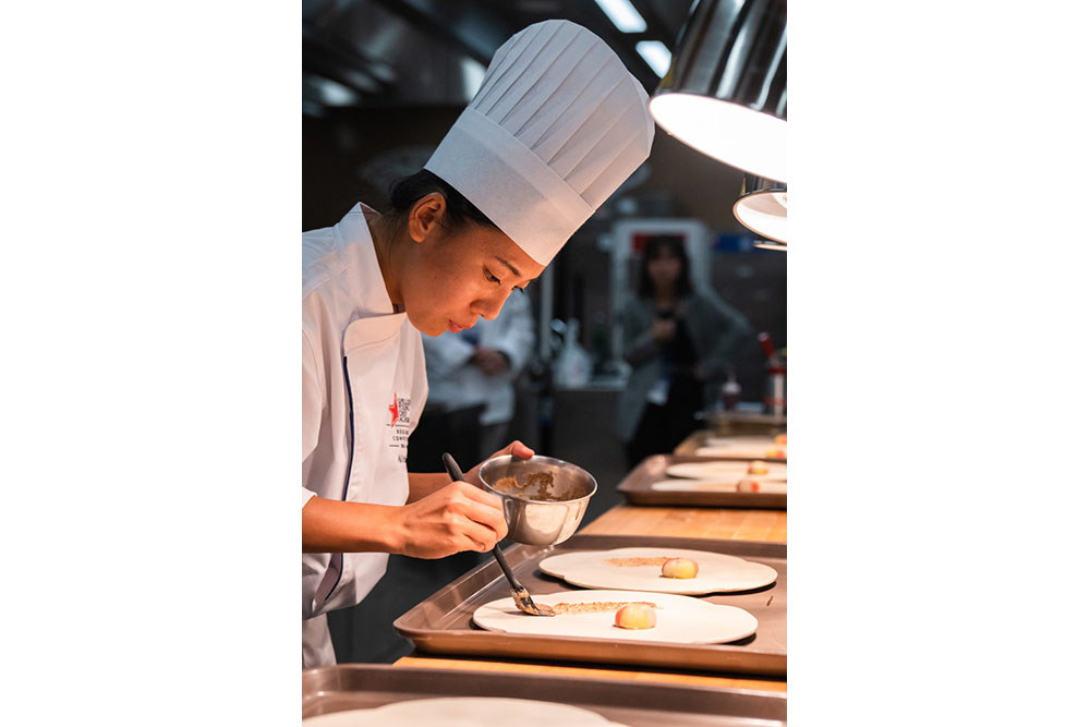 「特に3つ目が重要と考えています。日々、自分と向き合う機会はなかなかないヤングシェフたちが、シグネチャーディッシュを通して、自分は何者であるかを表現することが求められる」とシイ。目の前の食材をどうおいしく調理するかに加え、何を伝えたいのかを自分に問う作業を積み重ねる。コンペティションのプロセスが、シェフに必要なマインドセットを促す点に意味があるという。