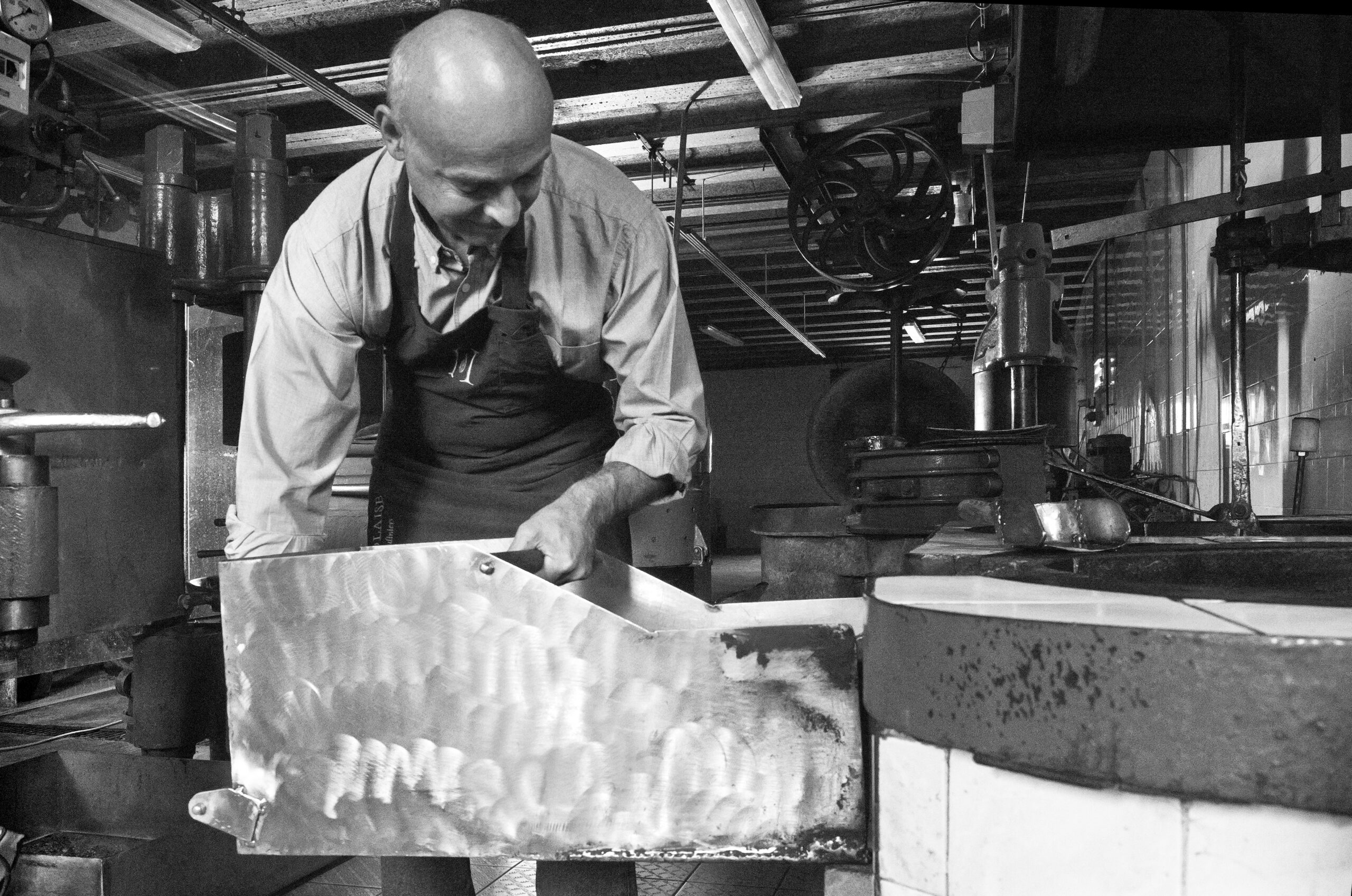 ピスタチオオイルならば、各原料の殻を剥ぎ、あらゆる不純物を取り除いた後、厚い鉄鍋で20kgずつ煎りながら味を引き出し、油圧プレスでゆっくり圧搾。遠心分離機を利用せず、3~4日かけてできた上澄みを移し取り、吸い取り紙で水分を除去・濾過。また、マンゴーやフランボワーズなどの果実をそのまま発酵させたフルーツヴィネガーは、個性に応じた製造過程で、フレッシュな酸味と滑らかな酸味の複雑なバランス、深みのある味わいを実現させています。
