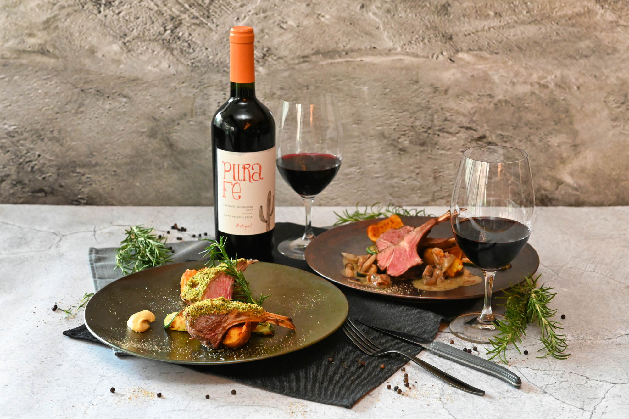 日本とチリの友好125周年を記念したキャンペーンとして、スパニッシュイタリアンのダイニング「RIGOLETTO(リゴレット)」にて、チリ産パタゴニアラムを使った期間限定メニュー「チリ産パタゴニアラムと茸のハーブバターロースト」(写真右)「チリ産パタゴニアラムの香草パン粉焼き」(写真左)が提供されています(各¥2,970、税込み)。チリ産プレミアムワインとのペアリングも楽しめます。極限の地が育んだ滋味深い味わい、ぜひお試しを。